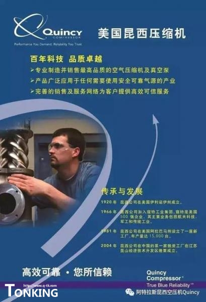 美國(guó)昆西空壓機(jī),專業(yè)致力于制造并銷售高品質(zhì)的空氣壓縮機(jī)及真空泵。美國(guó)昆西自主研發(fā)并制造的高效節(jié)能、優(yōu)質(zhì)環(huán)保的空氣壓縮機(jī)系統(tǒng)設(shè)備。昆西系列產(chǎn)品被廣泛應(yīng)用于全球制造業(yè)、醫(yī)療和氣候控制系統(tǒng)。在世界各地,任何需要使用安全可靠氣源的產(chǎn)業(yè)都有昆西系列產(chǎn)品的身影。質(zhì)量是昆西的立足根本,使客戶滿意是我們一貫的服務(wù)宗旨。昆西遍布全國(guó)的銷售和服務(wù)網(wǎng)絡(luò)隨時(shí)為廣大用戶提供先進(jìn)、安全可靠的產(chǎn)品和細(xì)致周到的售前、售后服務(wù)。